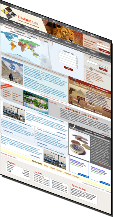 Voor backpack.nu heb ik enkele psd pagina 's omgezet in html pagina's. Dit was een uitdaging aangezien het een nogal drukke layout is.